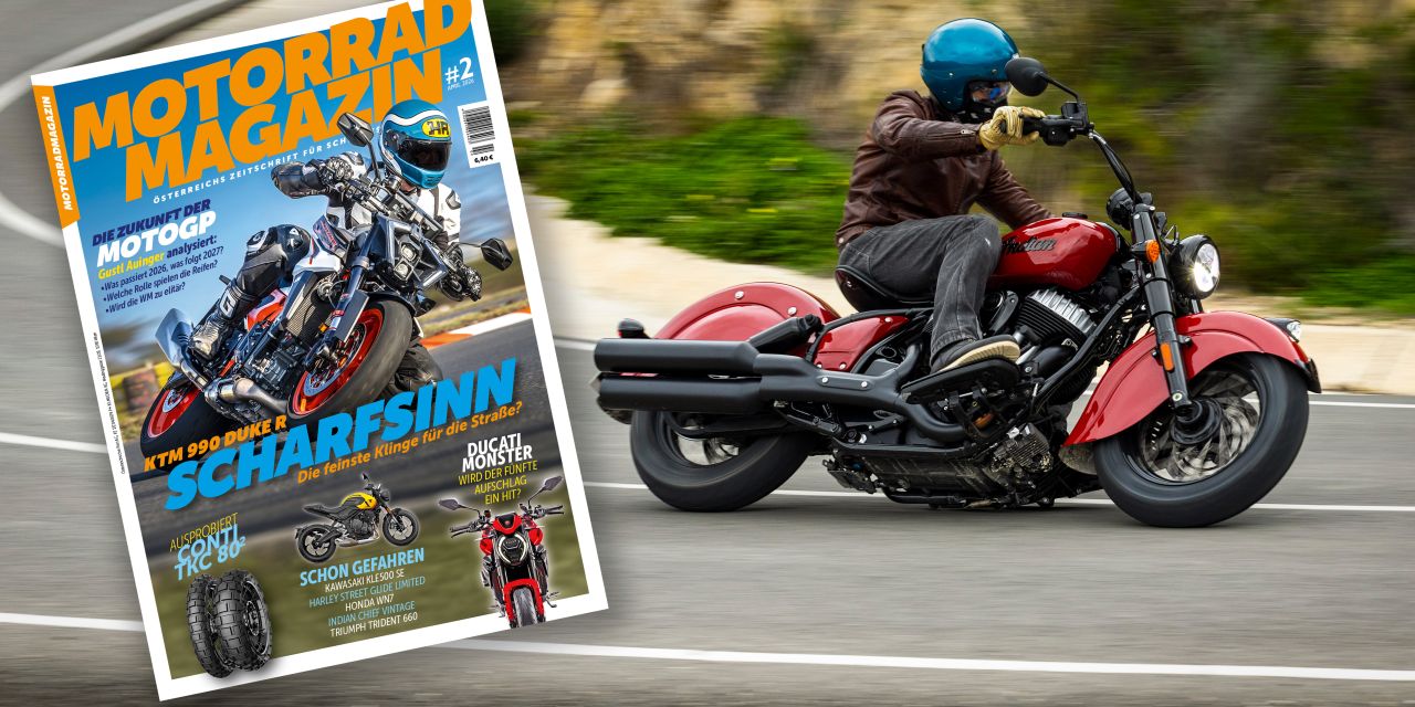 Der Saisonstart steht vor der Tür! Wir zeigen Euch späte News und haben einen großen Schwung an 2026er-Modellen bereits getestet: die brandneue Ducati Monster, die Kawasaki KLE500 SE, die Indian Chief Vintage, die stark überarbeiteten Triumph Trident 660 und Tiger Sport 660 sowie die großen Touring-Modelle von Harley: Street Glide Limited und Road Glide Limited. Außerdem im Fokus: die erste Testfahrt mit der elektrischen Honda WN7. Gleich vorne am Cover seht ihr eines unserer Highlights für die Saison 2026: die KTM 990 Duke R. Wir haben die schönen Früh-Frühlingstage genützt und einen ausführlichen Test mit dem scharfen „Punisher“ produziert. Besonders großen Testaufwand betreiben wir natürlich mit unseren Dauertest-Fahrzeugen. In dieser Ausgabe findet Ihr die sorgsam zusammengetragenen Saisonabschlüsse von Honda CB1000 Hornet SP und Triumph Tiger Sport 800. Gerade begonnen hat die neue MotoGP-Saison – für uns ein Anlass, Insider Gustl Auinger vors Mikro zu bitten und seine Analysen aufzuschreiben: Wer hat 2026 die besten Karten? Was passiert 2027? Welche Rolle spielen die Reifen, macht der neue Promotor Liberty Media alles richtig? Überraschende Antworten! Außerdem präsentieren wir Euch Flat-Trackerin und Supermoto-Racerin Yasi Poppenreiter als „Rider des Monats“, wir erklären Euch, wie man die Vorspannung richtig einstellt, gehen der Frage nach, wie man den Reifenverschleiß messen und begrenzen kann und hinterfragen den Mythos, dass Bremswege mit mehr Beladung zunehmen. Zu guter Letzt findet Ihr diesmal bei uns eine Reisestory aus Sri Lanka: Unser Reiseprofi Alexander Seger hat die Insel im Indischen Ozean besucht und viele Tipps sowie herrliche Fotos mitgebracht! Das neue Motorradmagazin: Jetzt gleich hier bestellen oder als Digitalmagazin online lesen!
