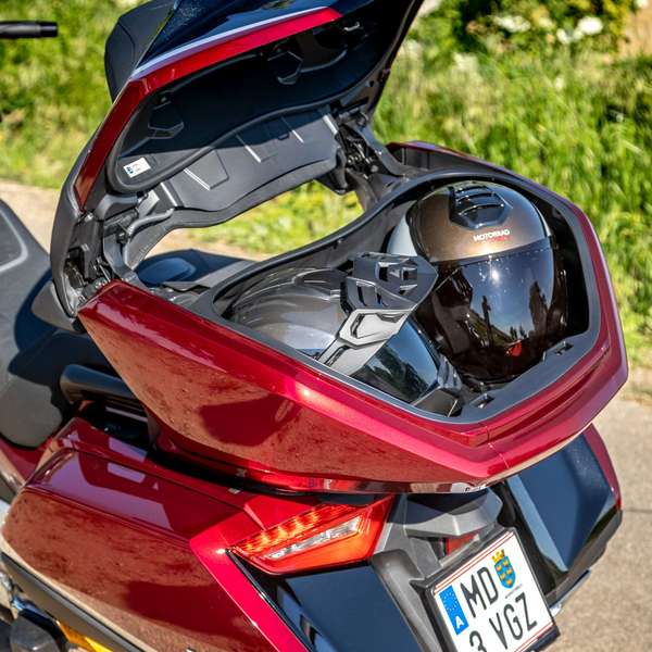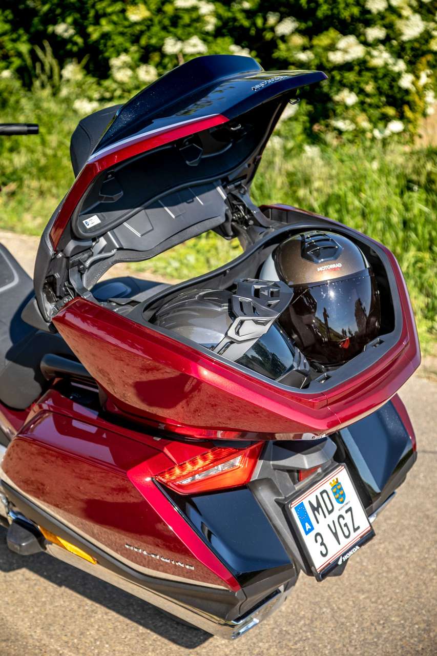 Rechthaberei ist unsympathisch, dennoch können wir’s uns an der Stelle nicht verkneifen: „Wir haben ja g’sagt.“ Es geht um den Stauraum, den das Entwicklerteam der neuen Gold Wing seinerzeit radikal zusammengestrichen hat: Statt 150 Liter im Vormodell gab’s in der neuen Generation plötzlich nur mehr 110 Liter. Diese Entscheidung basierte laut Honda auf einer Kundenforschung, die herausgefunden haben wollte, dass Gold Winger gar nicht so viel Stauraum brauchen.