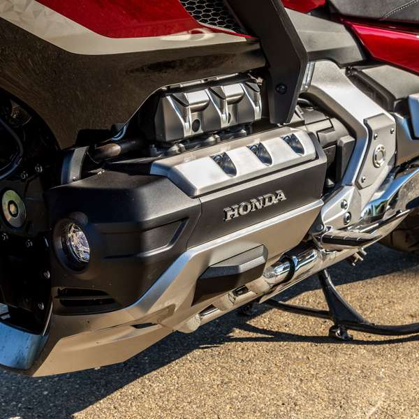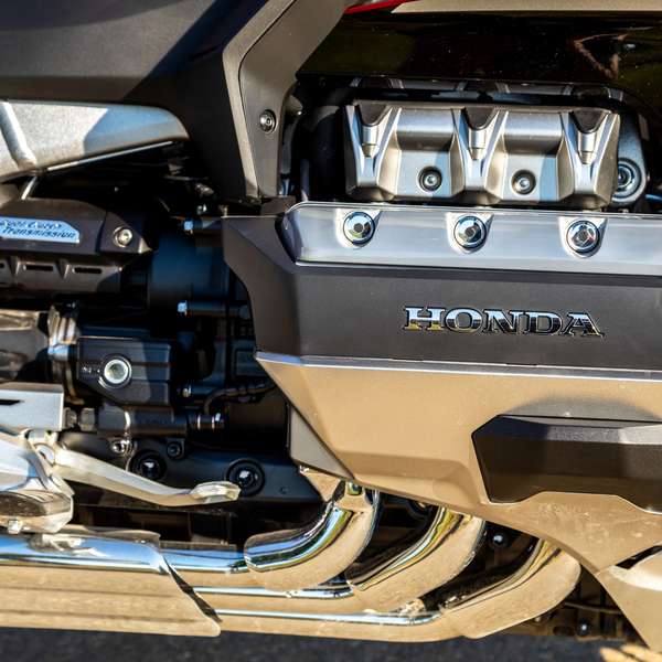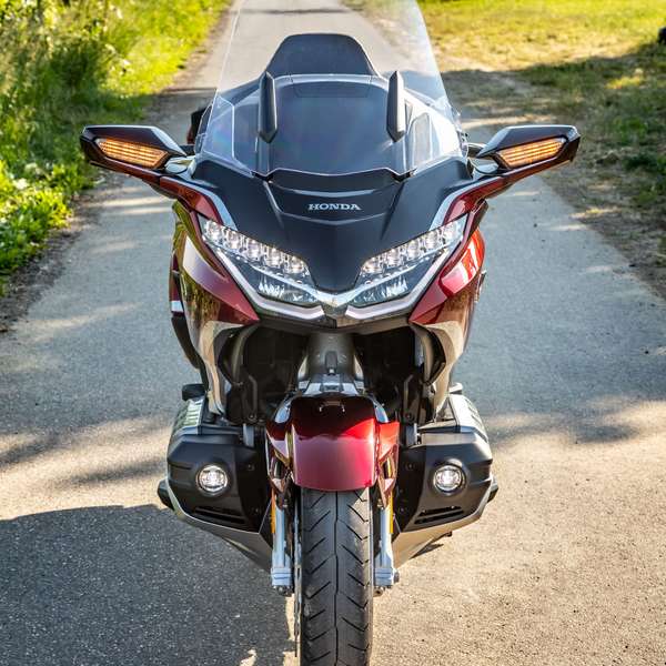 Viel Holz, aber auch viel Motorrad, mit dem man immer wieder für Aufsehen sorgt – und das einen selbst immer wieder verblüfft. Der von Ignoranten mitunter vorgebrachte Kommentar „da kann ich ja gleich ein Auto fahren“ ist nämlich ein gewaltiger Holler. Die Gold Wing fährt sich nämlich deutlich agiler, als man es bei ihren Ausmaßen und dem Lebendgewicht von 390 Kilo vermuten würde: souverän, präzise und dank des niedrigen Schwerpunkts ihres Boxermotors sogar in voller Beladung erstaunlich einfach.