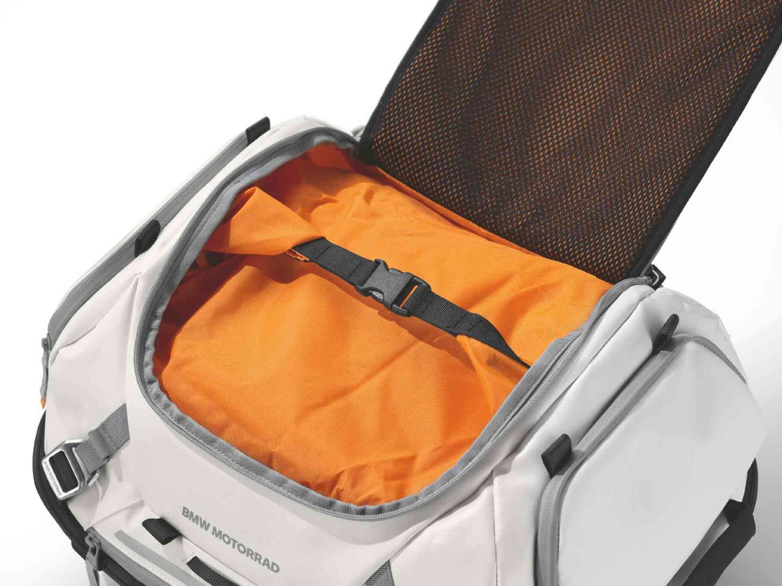 Mit verstaubaren Handtragegriffen sowie großem Tragegriff können die Hecktaschen bequem transportiert werden. Sogar ein Helm soll darin Platz finden. Besonders praktisch: der Reißverschluss zur Erweiterung von 50 auf 60 Liter Volumen beziehungsweise von 37 auf 45 Liter.