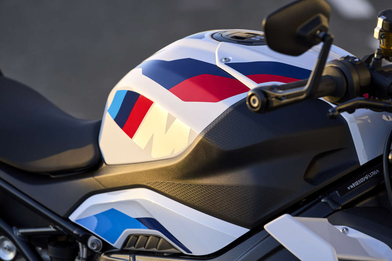 Keine Frage: Die letzten 25 Prozent (mindestens) der Leistung lassen sich auf der Straße kaum ausspielen, aber das galt schon für die S 1000 R. Also was damit machen? Erstens ist es nicht allein die Leistung, die die M 1000 R so gut macht. Sie ist mit einer superleichten M-Batterie, edlen M-Schmiederädern, einem M-Titan-Endschalldämpfer, einem M-Sitz, gefrästen M-Brems- und Kupplungshebeln und einer M-Bremse ausgestattet.