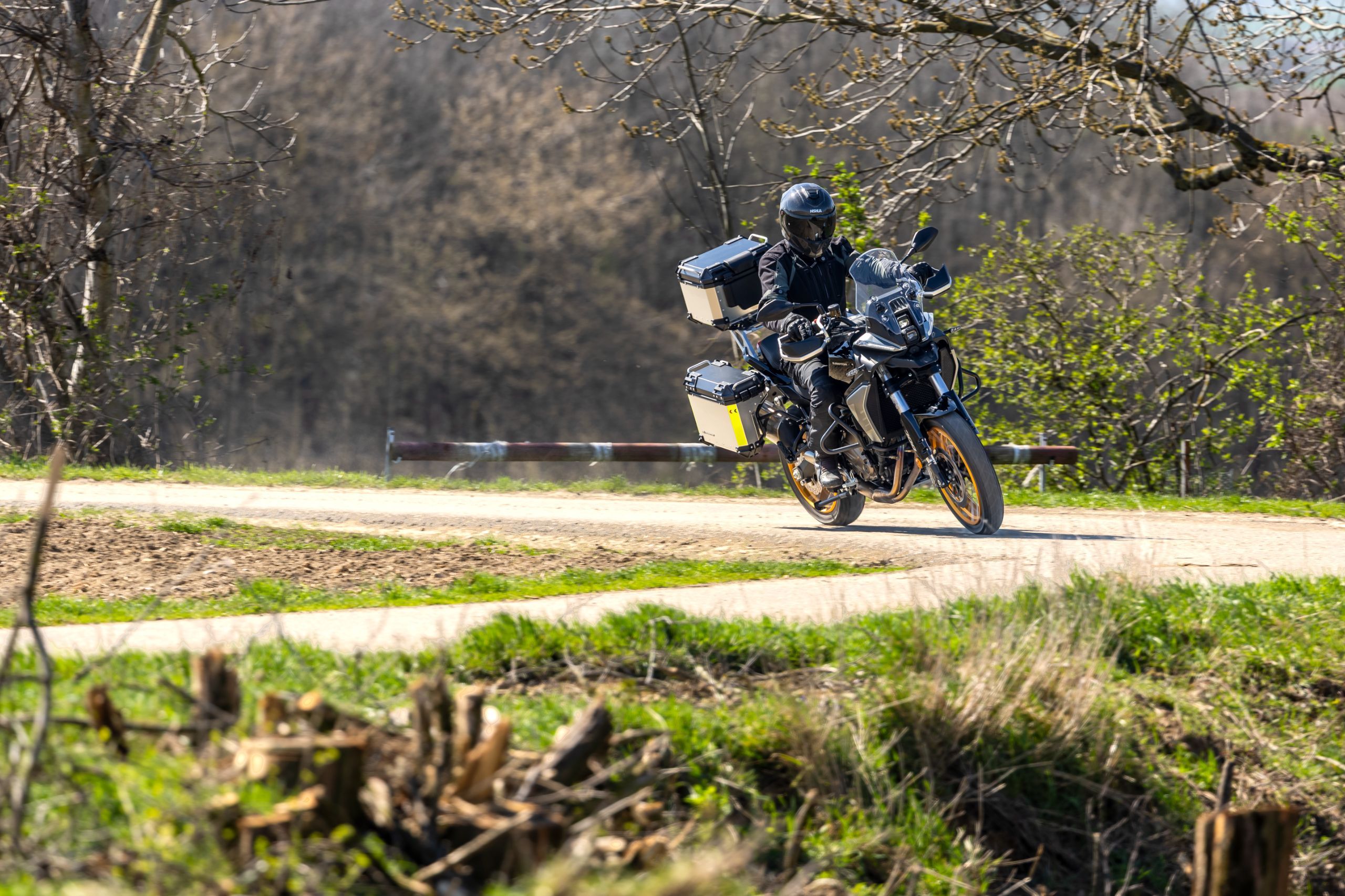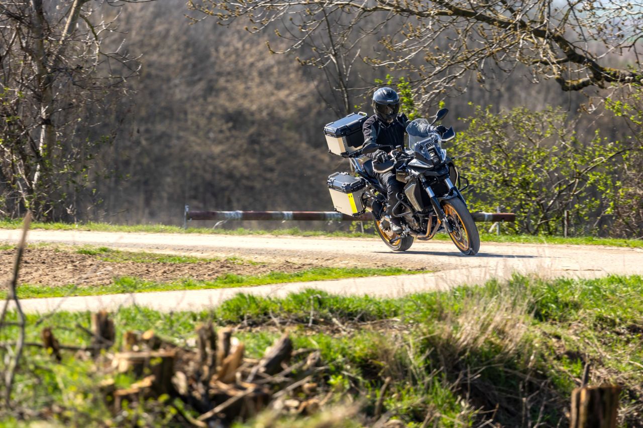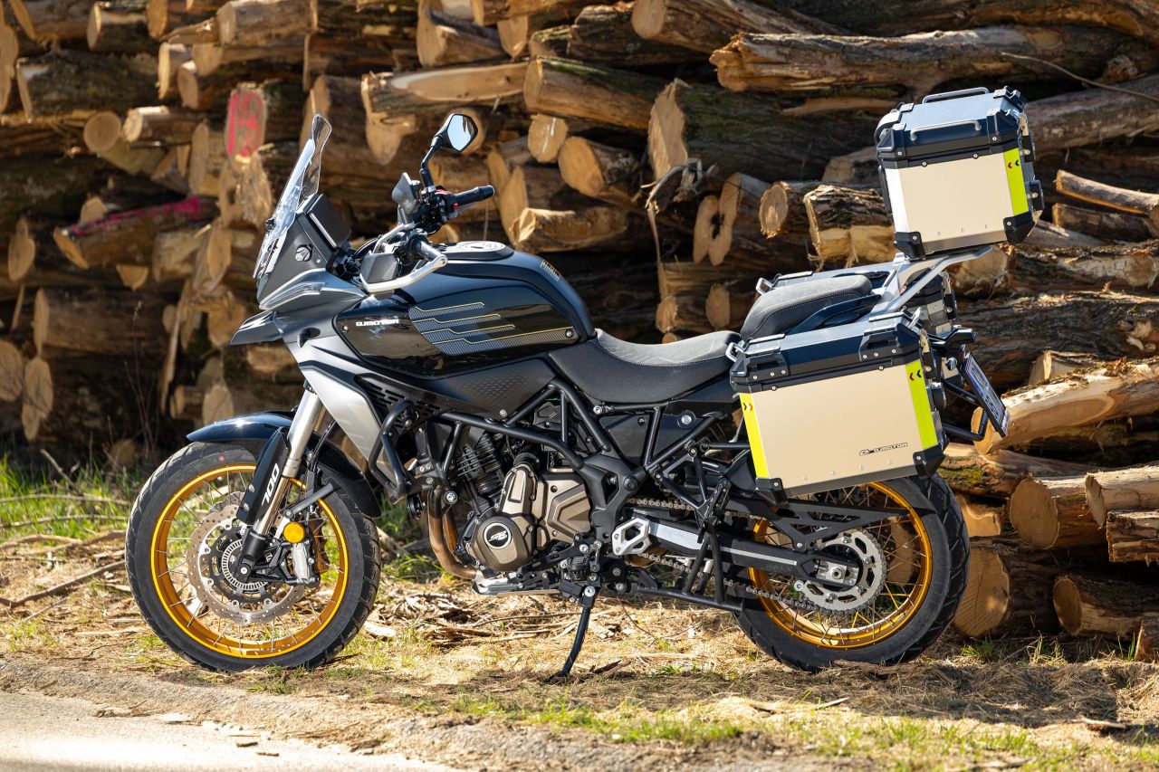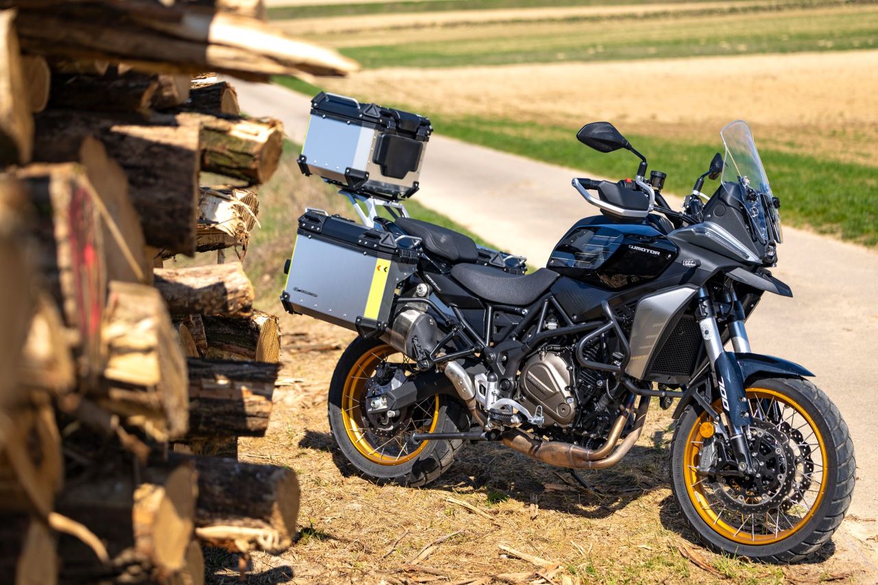 Wir haben unsere QJMotor mit maximaler Vorspannung am Federbein übernommen. Dadurch war das Heck deutlich höher als mit der geringsten Vorspannung, was sich direkt auf die Sitzhöhe und den Gesamtschwerpunkt auswirkt. Nebenbei gibt es mehr Schräglagenfreiheit und eine größere Bodenfreiheit, von der die SRT 700 SX als Soft-Adventure aber kaum profitiert. Tatsächlich überwiegen die Nachteile, weil sie Bodenunebenheiten sehr direkt an den Fahrer weiterleitet und am Stand durch den hohen Schwerpunkt längere Beine braucht, um auch offroad immer sicher stehen bleiben zu können.