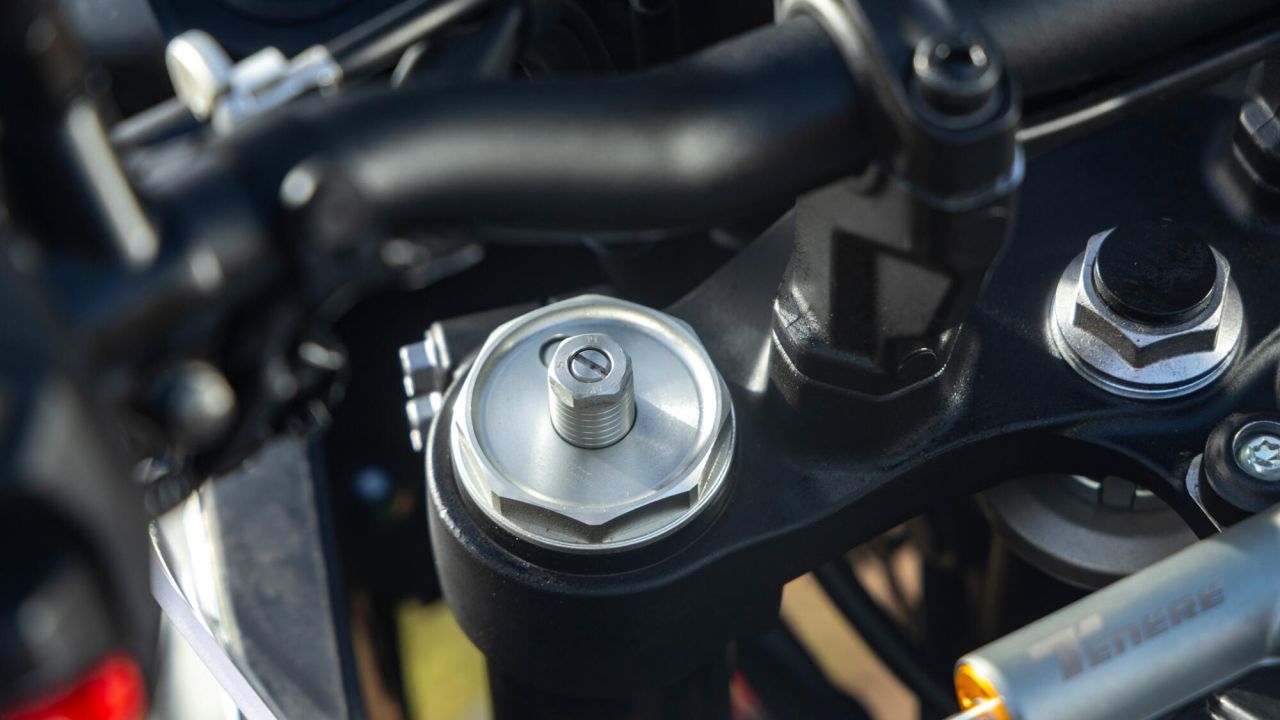 Um das bei vollen Tanks trotzdem natürlich höhere Gewicht gegenüber dem Basismodell im Griff zu behalten, verfügt die Ténéré 700 World Raid über zwei spezielle Lösungen: Zum einen erhält sie einen 16-stufigen Lenkungsdämpfer, zum anderen wurde die Upside-down-Gabel gegenüber der Rally-Version nochmals mächtiger – die 43er-wurde gegen eine 46-Gabel getauscht. Allerdings ist diese Gabel von KYB nur in der Vorspannung verstellbar. Das KYB-Federbein hinten ist in der Vorspannung (per Handrad) und in der Zugstufe justierbar.
