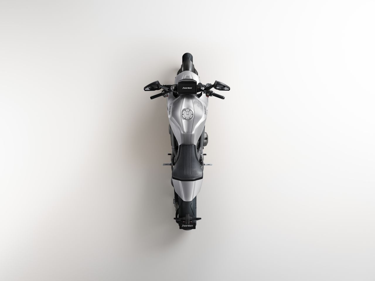 Norton Atlas und Atlas GT. Etwas überraschend zeigt Norton auch zwei hochbeinige Bikes in der unteren Mittelklasse. Der Motor dafür – ein Reihen-Zweizylinder mit 585 ccm und 270 Grad Hubzapfenversatz – dürfte dem Vernehmen nach auf dem Grundgerüst des neuen BMW-Zweizylinders aus der F 450 GS aufbauen, der ja ebenfalls bei Norton-Mutter TVS gebaut wird. Für den Einsatz in der Atlas wurde der Motor aber jedenfalls deutlich modifiziert, nicht zuletzt ja auch vergrößert. Die Leistungswerte blieben noch offen.