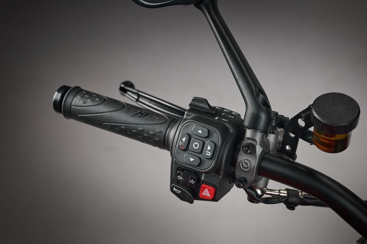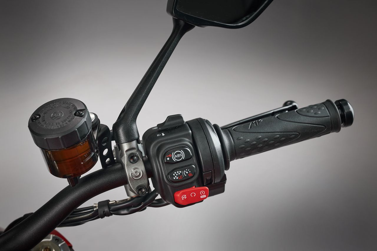 Vor der Fahrerin oder dem Fahrer thront ein neues 5-Zoll-TFT-Display im 16:10-Format und im sehr kompakten Gehäuse, das natürlich über verschiedene Darstellungsformate verfügt. Connectivity ist part of the game, samt Pfeil-Navi. Hightech gibt’s außerdem noch an vorderster Front: Der neue Scheinwerfer mit sehr einprägsamer Tagfahrlicht-Signatur arbeitet mit Matrix-Technik. Das bedeutet, dass sich kleine LED-Segmente zuschalten, wenn die IMU eine Kurvenfahrt meldet. Es gibt also Kurvenlicht, trotz des extrem kompakten Scheinwerfers – ein Hoch der Technik!