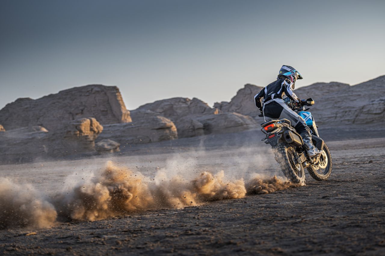 Ihre Tourentauglichkeit unterstreicht die 1000MT-X mit einem 22,5-Liter-Tank, die Geländefähigkeiten mit einem Leergewicht von 222 Kilo, was in dieser Reise-Adventure-Klasse absolut okay ist. Ab Werk ist das Bike mit Pirelli Scorpion Rally STR-Reifen in den Dimensionen 90/90 R21 vorne und 150/70 R18 hinten ausgestattet. Die 18-Zoll-Bereifung hinten richtet den Blick allerdings klar in den professionellen Stollensektor, wo sich in dieser Dimension sehr viele Modelle für den ernsthaften Geländeeinsatz finden.