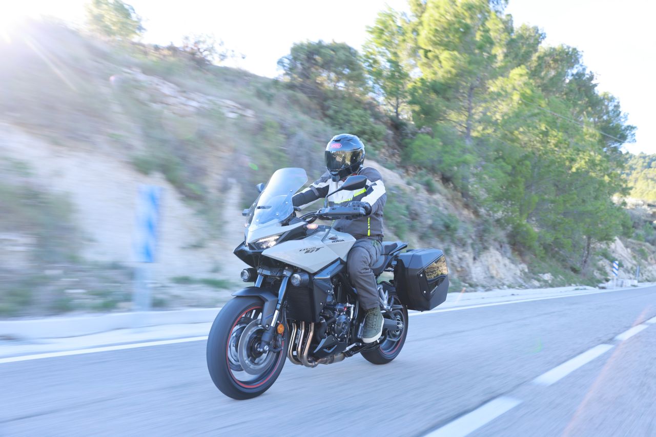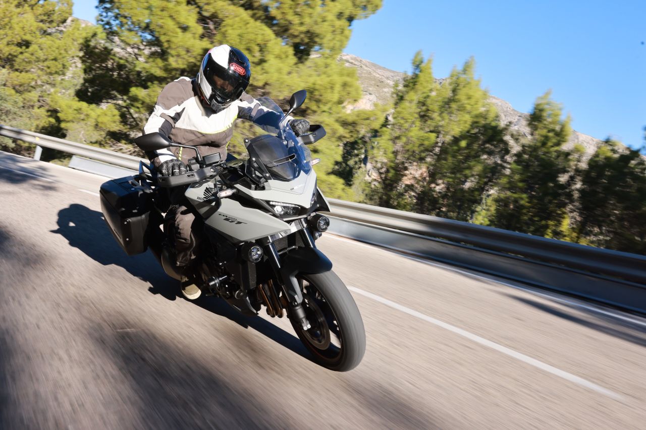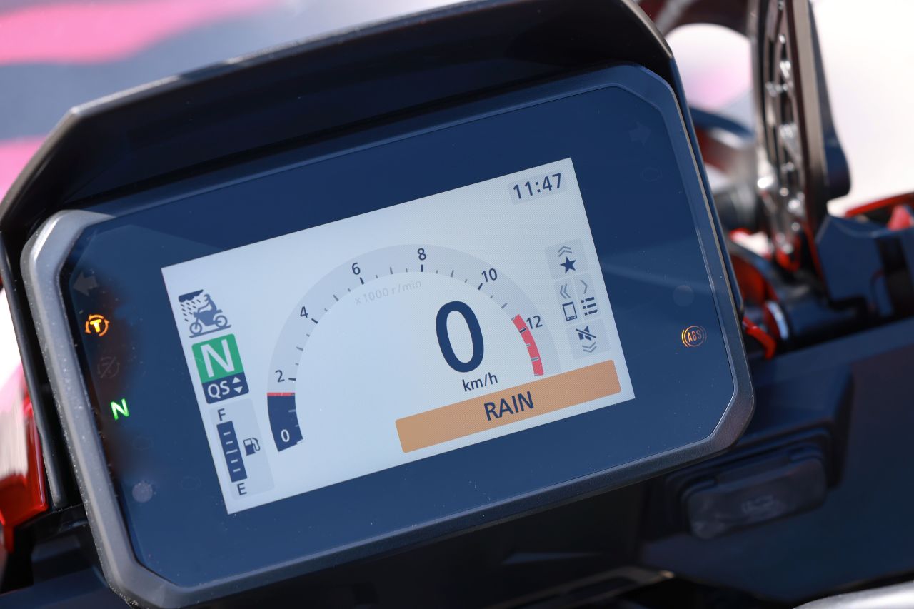 Womit Honda diesmal punktet sind nicht nur Qualität, Zuverlässigkeit und ein massentauglicher Modell-Charakter, sondern vor allem eine umfangreiche Grundausstattung und ein äußerst attraktiver Preis. Für 17.490 Euro (Deutschland 14.429 Euro inkl. Überführung) bekommt man nicht nur den Reihenvierzylinder aus der Fireblade, der in der Hornet 152 und hier 150 PS leistet, sondern auch vier Fahrmodi, schräglagensensitive Assistenzsysteme, einen Quickshifter, Heizgriffe, Tempomat, einen fünffach verstellbaren Windschild, Handguards, einen Hauptständer, ein elektronisches Fahrwerk und sogar Seitenkoffer (37 und 28 Liter). Das 5-Zoll-TFT mit Roadsync, eine USB-C-Steckdose im Cockpit, selbstrückstellende Blinker und das Notbremssignal seien hier nur am Rande erwähnt.