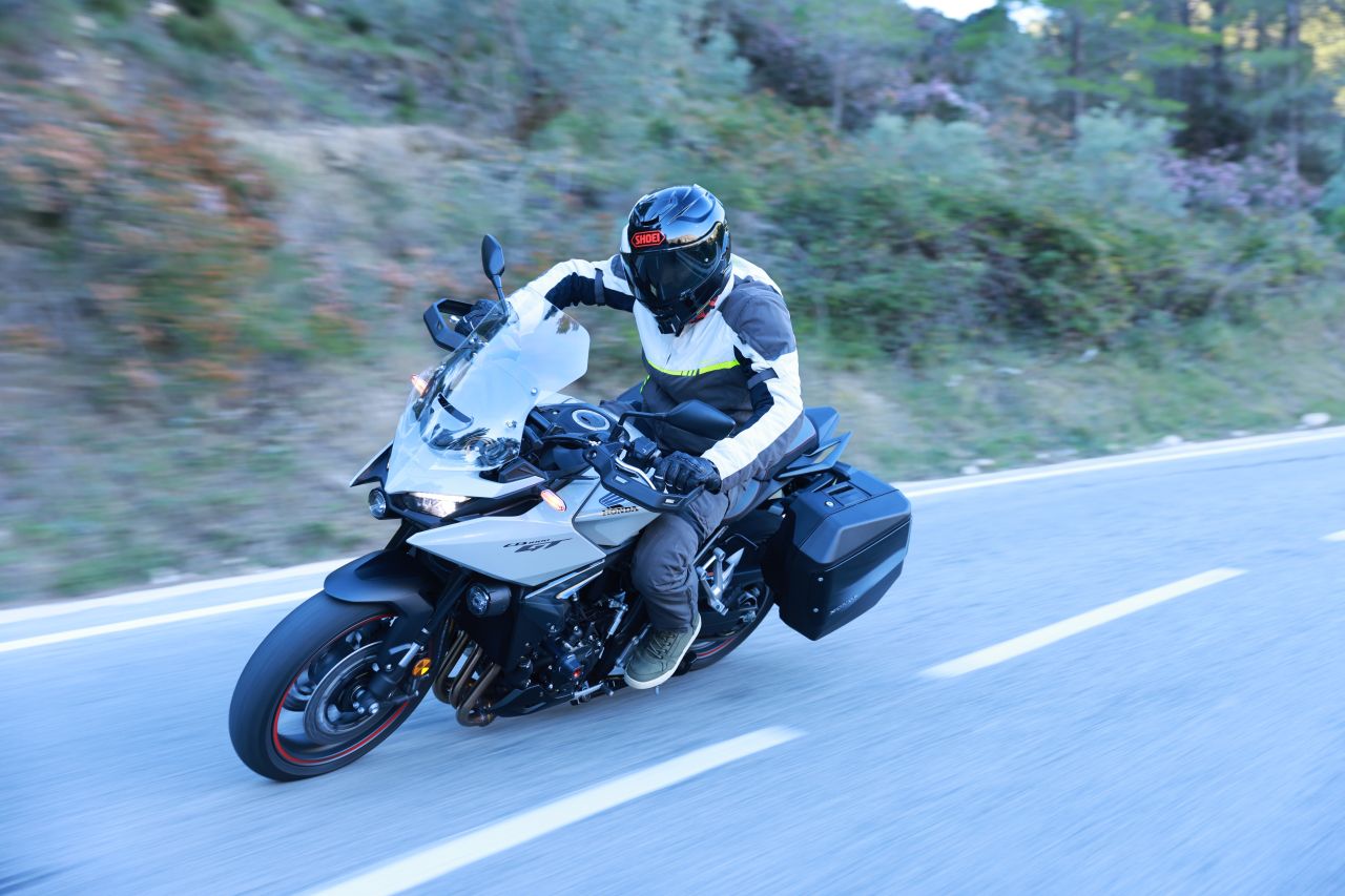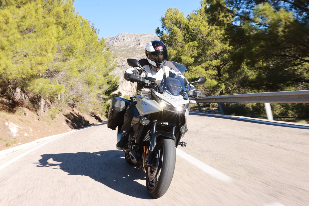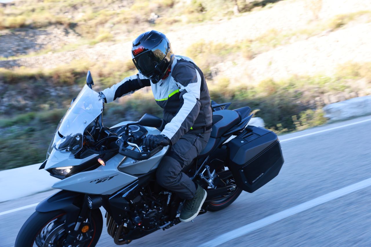 Womit Honda diesmal punktet sind nicht nur Qualität, Zuverlässigkeit und ein massentauglicher Modell-Charakter, sondern vor allem eine umfangreiche Grundausstattung und ein äußerst attraktiver Preis. Für 17.490 Euro (Deutschland 14.429 Euro inkl. Überführung) bekommt man nicht nur den Reihenvierzylinder aus der Fireblade, der in der Hornet 152 und hier 150 PS leistet, sondern auch vier Fahrmodi, schräglagensensitive Assistenzsysteme, einen Quickshifter, Heizgriffe, Tempomat, einen fünffach verstellbaren Windschild, Handguards, einen Hauptständer, ein elektronisches Fahrwerk und sogar Seitenkoffer (37 und 28 Liter). Das 5-Zoll-TFT mit Roadsync, eine USB-C-Steckdose im Cockpit, selbstrückstellende Blinker und das Notbremssignal seien hier nur am Rande erwähnt.