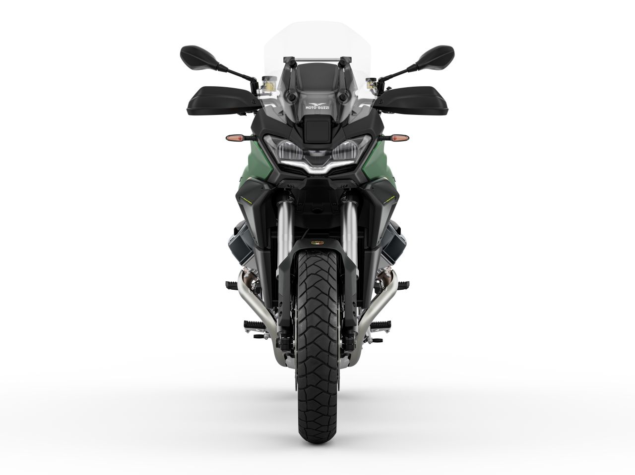 Gehen wir weiter zur größeren Moto Guzzi Stelvio mit flüssig gekühltem V2-Motor. Auch hier wird die Farbpalette komplett neu gemischt, 2026 sind zwei neue Varianten im Programm: Grigio Climbing und Verde Hiking.