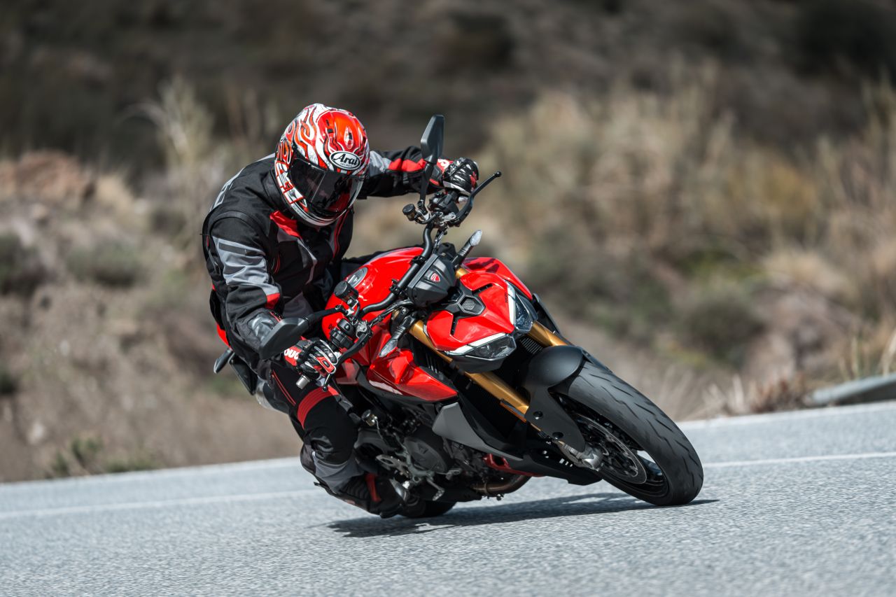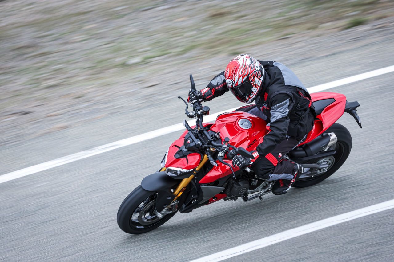 Nützliche Tools für den Alltag, den man mit dem freundlichsten Streetfighter aller Zeiten gerne bestreiten wird wollen. Das Naked Bike ist so zugänglich und klar verständlich, dass sofort der reine, ungetrübte Fahrspaß das Kommando übernimmt. Mit einem im Vergleich zur Vorgängerin um ganze 30 Millimeter breiteren Lenker und einer um dasselbe Maß längeren Schwinge im Vergleich zur Panigale, har der Fahrer von den ersten Metern ein starkes Kontrollgefühl und muss sich auch beim harten Beschleunigen und in schnellen Radien keine Sorge um Unruhe im Fahrwerk machen – das gilt zumindest für das feine Schwedengold.