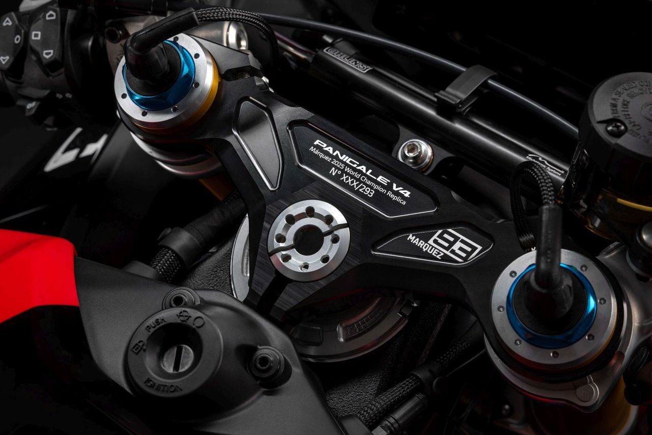 Anlässlich des Triumphs von Marc Márquez, der Ducati den vierten MotoGP-Fahrertitel in Folge und den fünften in der Firmengeschichte bescherte, präsentierte der italienische Motorradhersteller die neue Panigale V4 Márquez 2025 World Champion Replica, ein Sammlerstück in einer Auflage von nur 293 Stück, mit einer von der MotoGP inspirierten Lackierung und exklusiven Komponenten.