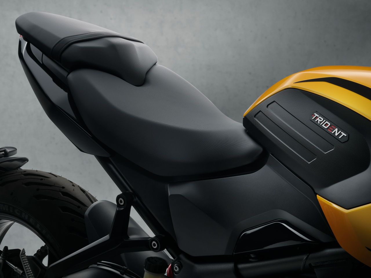 An der Trident 660 wurde der höheren Leistung entsprechend der Rahmen überarbeitet und ein neues Showa-Federbein mit Vorspannungs- und Zugstufenverstellung verbaut. Dieses ergänzt die hochwertige Showa 41-mm-USD-Big-Piston-Gabel vorne und bietet einen Federweg von 130 Millimeter. Leichte Aluminiumgussräder und Michelin Road 5-Reifen bieten unter allen Bedingungen hervorragenden Grip und Feedback, während zwei 310-mm-Scheiben mit Zweikolben-Nissin-Bremssätteln für eine starke, exakt dosierbare Bremsleistung sorgen sollen. Stahlflex-Bremsleitungen und ein einstellbarer Bremshebel gewährleisten eine gleichbleibende Bremsleistung und eine konstante Kontrolle.