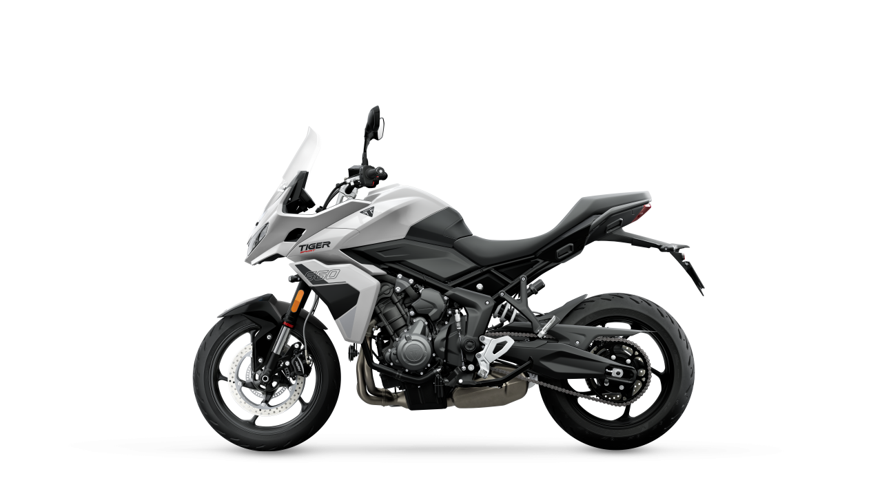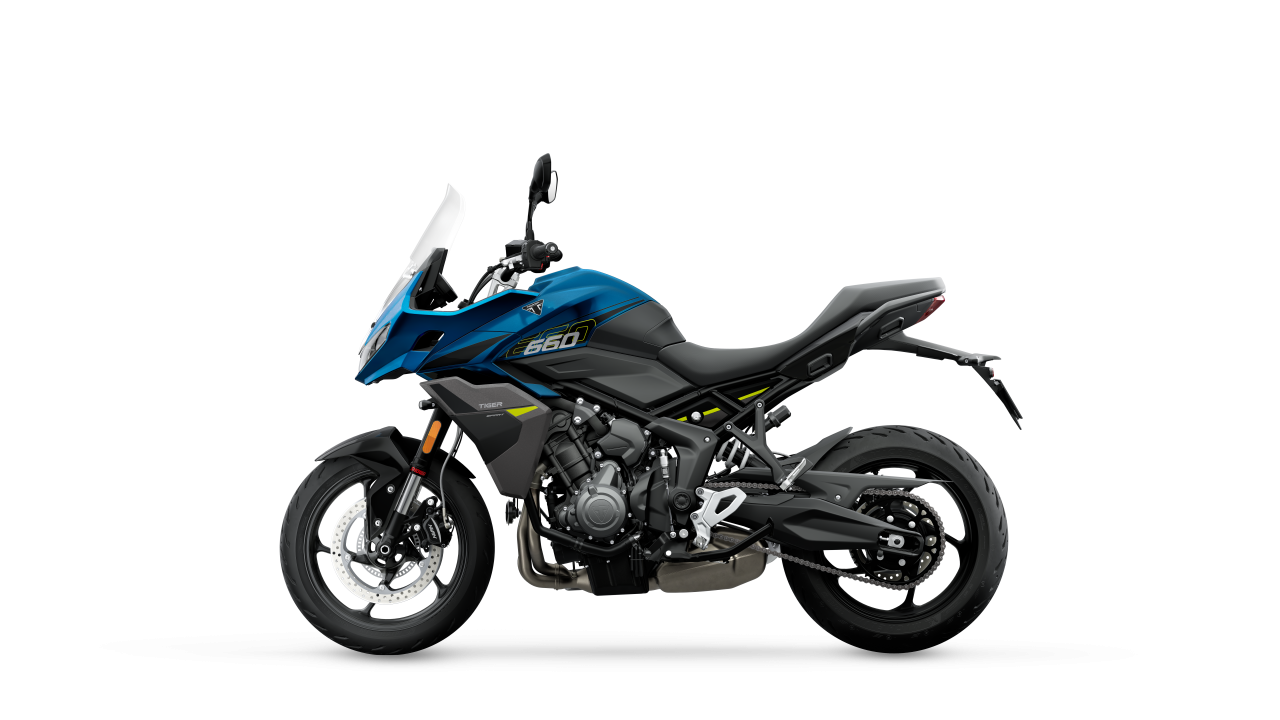 Die Tiger Sport 660 präsentiert sich in den auffälligen neuen Premium-Farben Interstellar Blue mit Mineral Grey und Silver Ice mit Intense Orange sowie in der Standardfarbe Pure White.