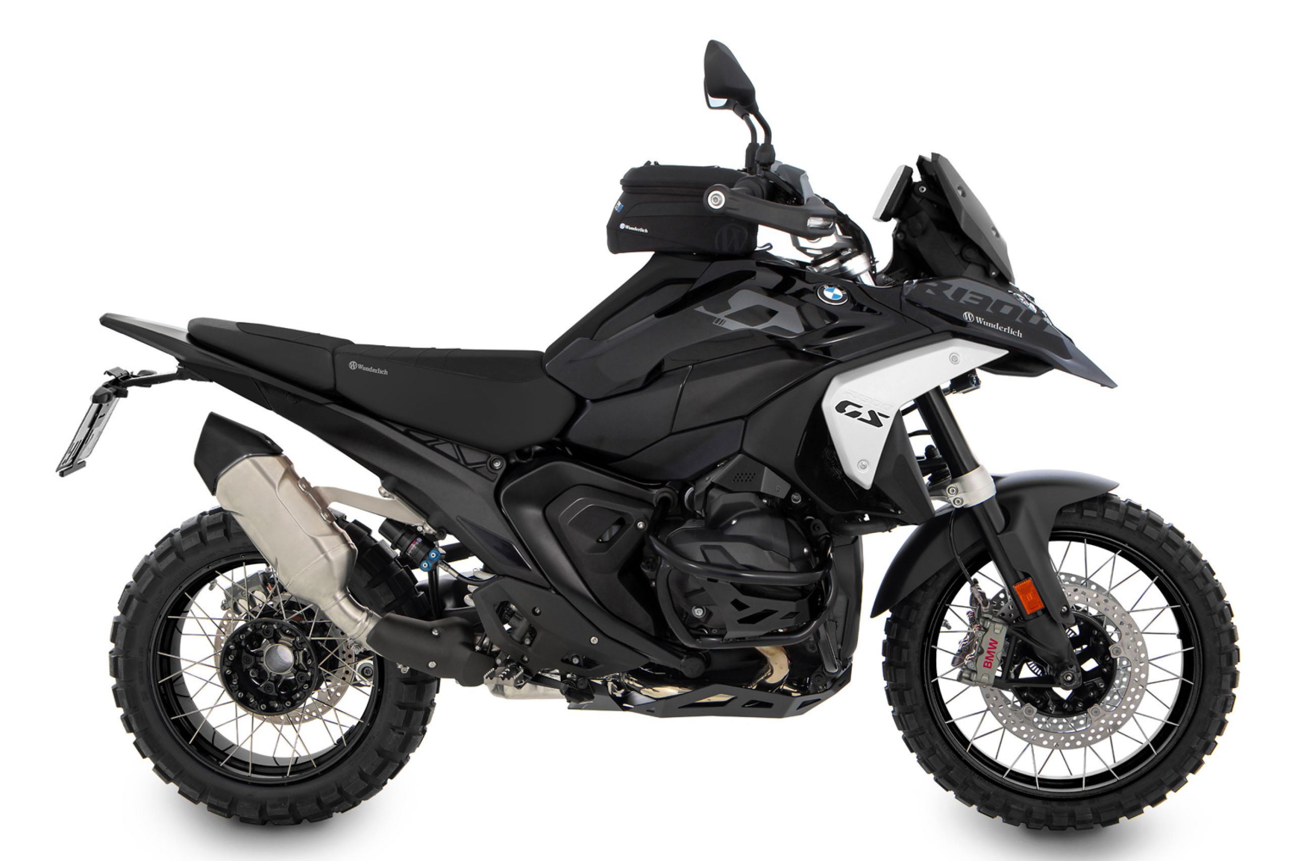 Der Wunderlich Heckumbau EDITION X für die BMW R 1300 GS: Schlankes Heck im Offroad-Look. Zusammen mit der um 18° nach oben gereckten Höherlegung* (Ohne ABE) des Original-Auspuffs, dem EDITION X Sitzbankset und dem einstellbaren Kennzeichenträger entsteht genau jene agile Anmutung, die das Konzept der EDITION X ausmacht: Dynamisches, gleichzeitig funktionales Design mit hochwertigen Komponenten. Der maßgeschneiderte Bezug schützt die softe Original-Tankverkleidung der BMW R 1300 GS und kaschiert zugleich deren kittelgraue Optik mit einem Akzent.