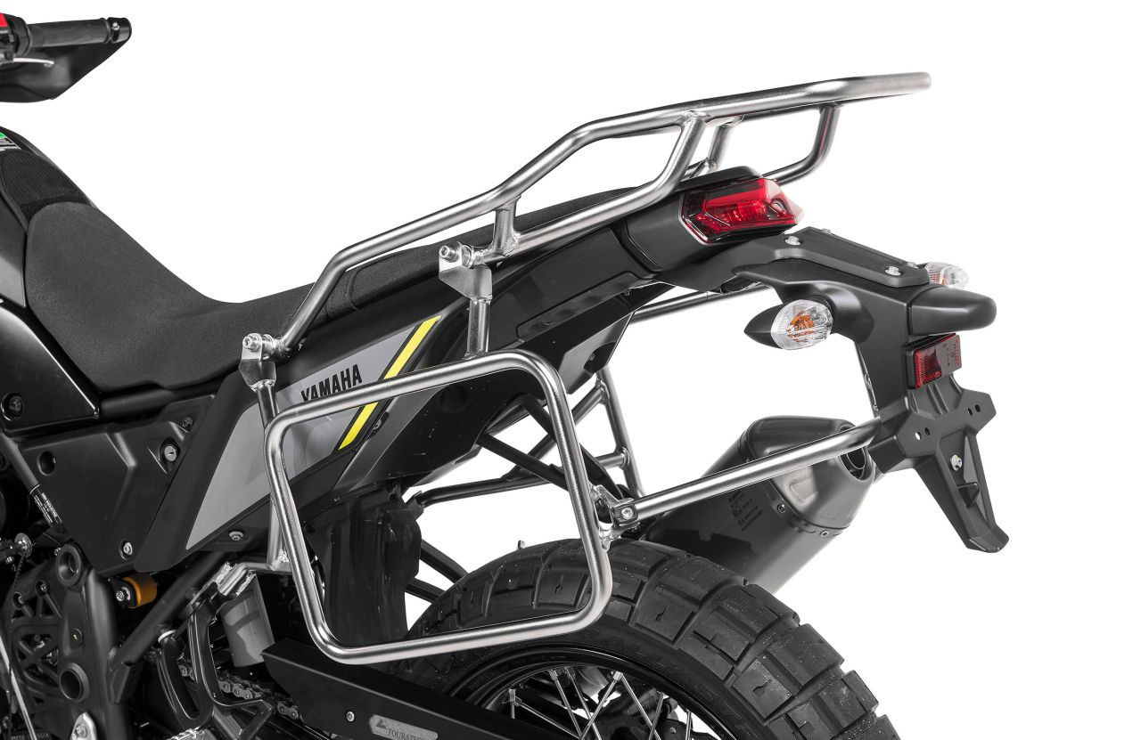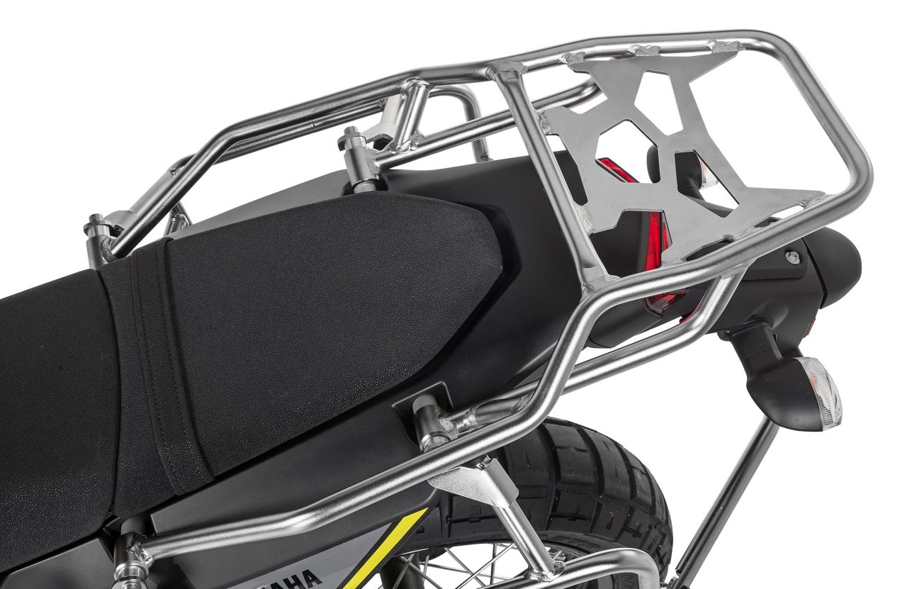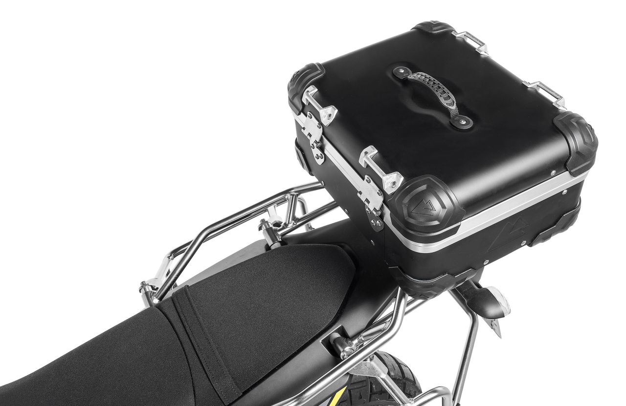 An den Kofferträgern aus 18 x 2 Millimeter starkem Edelstahlrohrlassen sich unter anderem die ZEGA Alukoffersysteme befestigen. Das aktuelle Spitzenmodell ZEGA Evo zeichnet sich durch einen pistenfesten und dennoch komfortabel zu bedienenden Verriegelungsmechanismus aus. Alternativ können hochbelastbare, wasserdichte Seitentaschen der Reihen Endurance, Travel sowie Extreme Edition mit Schnellverschluss montiert werden. Wer ganz auf einen Träger verzichten möchte, findet im Softgepäcksystem Discovery 2 eine ebenso offroad- wie alltagstaugliche Transportlösung, die per Gurtsystem auf dem Soziusplatz befestigt wird, oder er nutzt die Tankrucksäcke der Ambato-Serie sowie Zusatztaschen in unterschiedlichen Größen.
