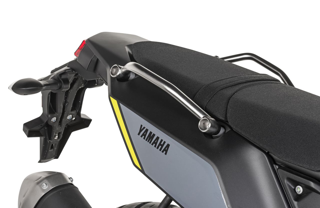 Das Highlight beim Schutzprogramm ist der brandneue Verkleidungssturzbügel, der speziell auf die jüngste Modellgeneration ab Jahrgang 2025 abgestimmt wurde. Gefertigt aus 25 Millimeter starkem Edelstahlrohr, bietet der Bügel interessante neue Features. So können an der neuen »Tech Plate« unterschiedlichste Softgepäckstücke griffgünstig und pistenfest verzurrt werden.