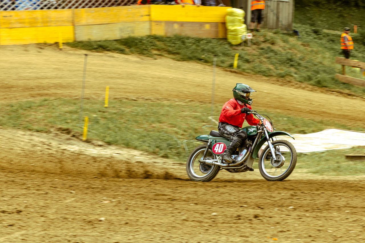 Wer glaubt, dass die betagten Crosser (gemeint sind die Motorräder, es trifft aber auch auf viele Starter zu) hier ein gemütliches Schaulaufen und Paradieren an den Tag legen, der irrt sich gewaltig: Die Szene bietet mit ihren Twin-Shocks und Zweitaktern, mit bekannten und verschwundenen Marken, eine großartige und spannende Show.