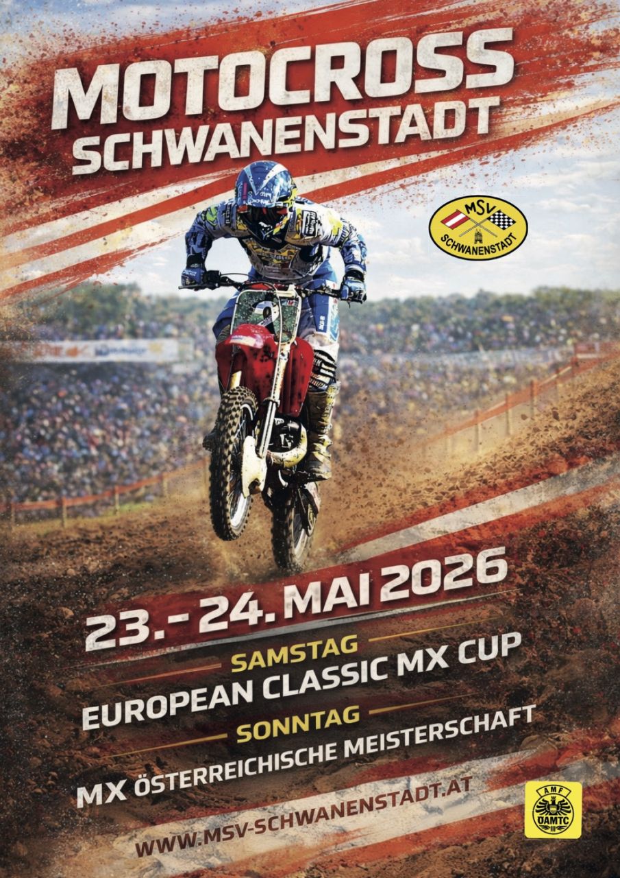 Dazu wird der Event vom MSV Schwanenstadt großartig in Szene gesetzt. Wer den Kontrast liebt, bleibt gleich noch einen Tag länger: dann gastiert die MX-Staatsmeisterschaft auf der schönen Naturbahn. Infos auf www.msv-schwanenstadt.at