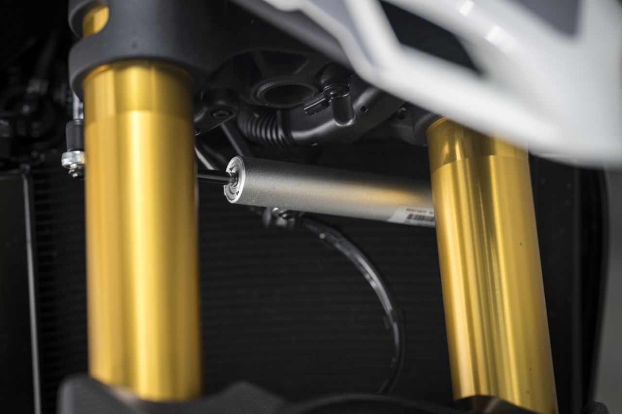 Angetrieben vom neuesten 890-Kubik-V2 mit variabler Ventilsteuerung und mit geändertem Design sowie Aufwertungen im Detail startet die DesertX in die nächste Sonderprüfung.